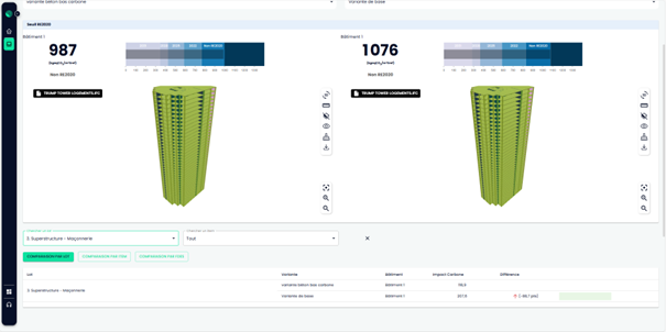 Ils constituent donc les leviers prioritaires pour faire passer le projet sous le seuil réglementaire de 588,6 kgCO₂e/m² fixé pour 2025.